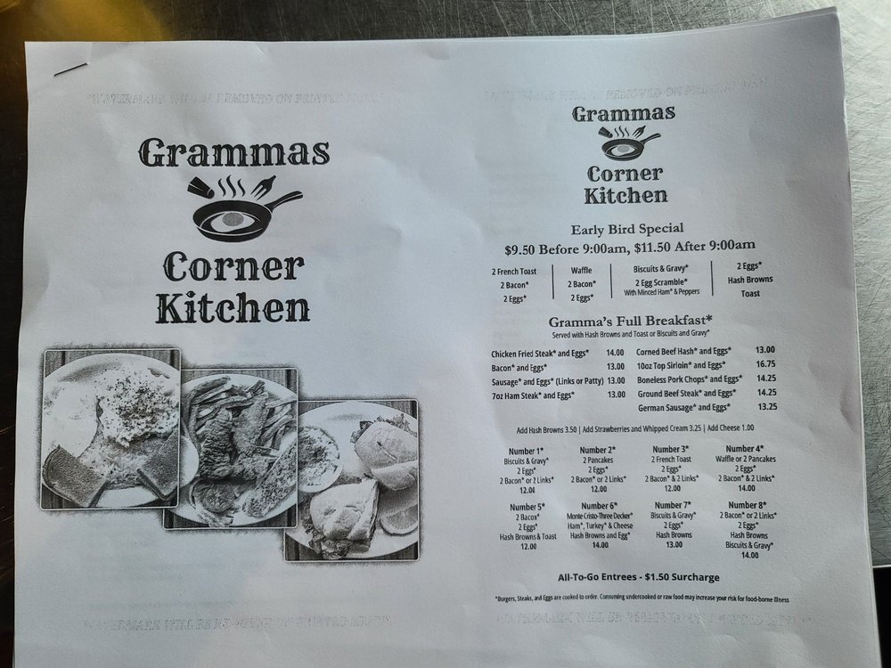 Customer reviews rave about the fantastic food and excellent service, with standout dishes like the senior full breakfast, biscuits and gravy, and corned beef hash receiving high praise. The attention to detail in the food preparation, from the thicker ham slices to the zesty green onions, showcases the commitment to quality at Grammas Corner Kitchen. Whether you're looking for a cozy breakfast spot or a satisfying lunch, this restaurant is a must-visit for homemade comfort food done right.