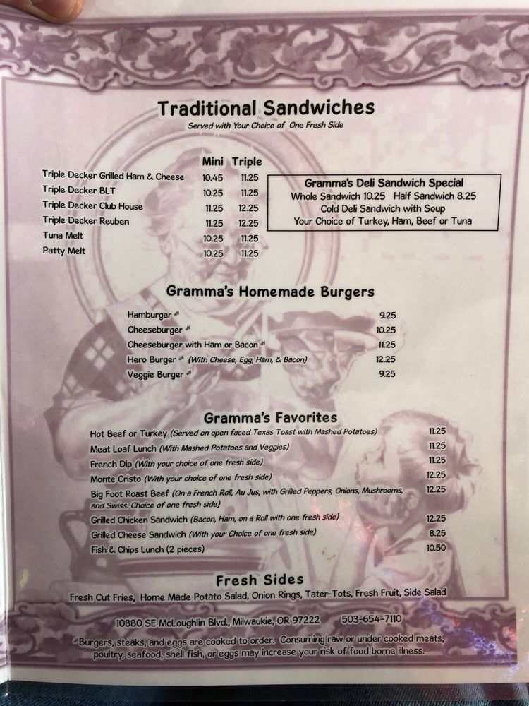 Located in Milwaukie, Oregon, Grammas Corner Kitchen is a delightful eatery specializing in sandwiches, breakfast & brunch, and burgers. With a plethora of amenities including delivery, takeout, reservations, vegetarian options, and even happy hour specials, this restaurant caters to a diverse range of customers. The warm and welcoming atmosphere is highlighted by the friendly staff who go above and beyond to ensure a pleasant dining experience.